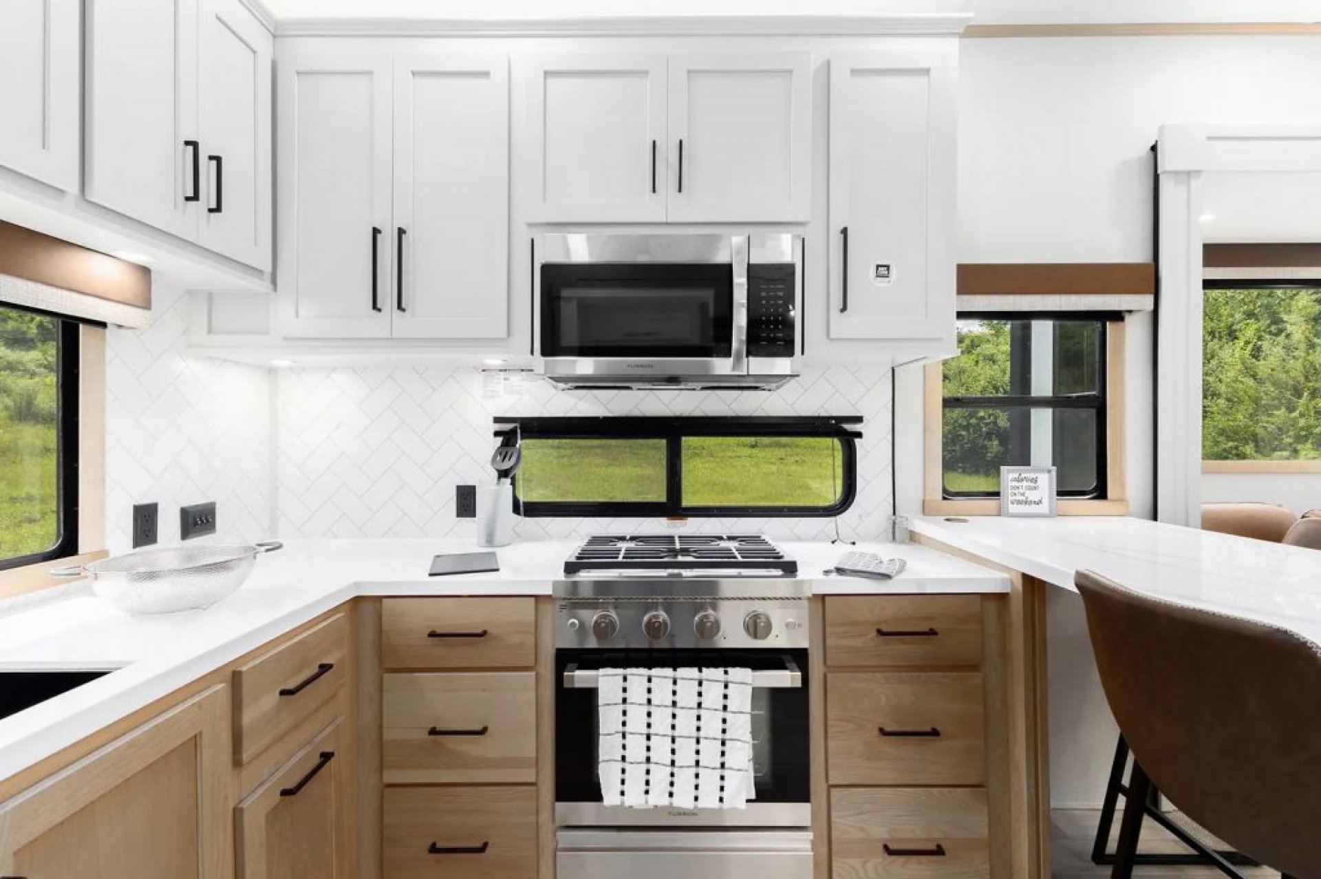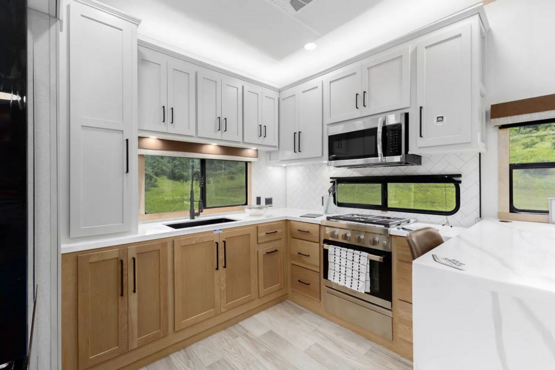 - Climate Control: Dual 15K BTU ducted A/C units and 40K BTU furnace for zoned comfort; 60K BTU tankless water heater.