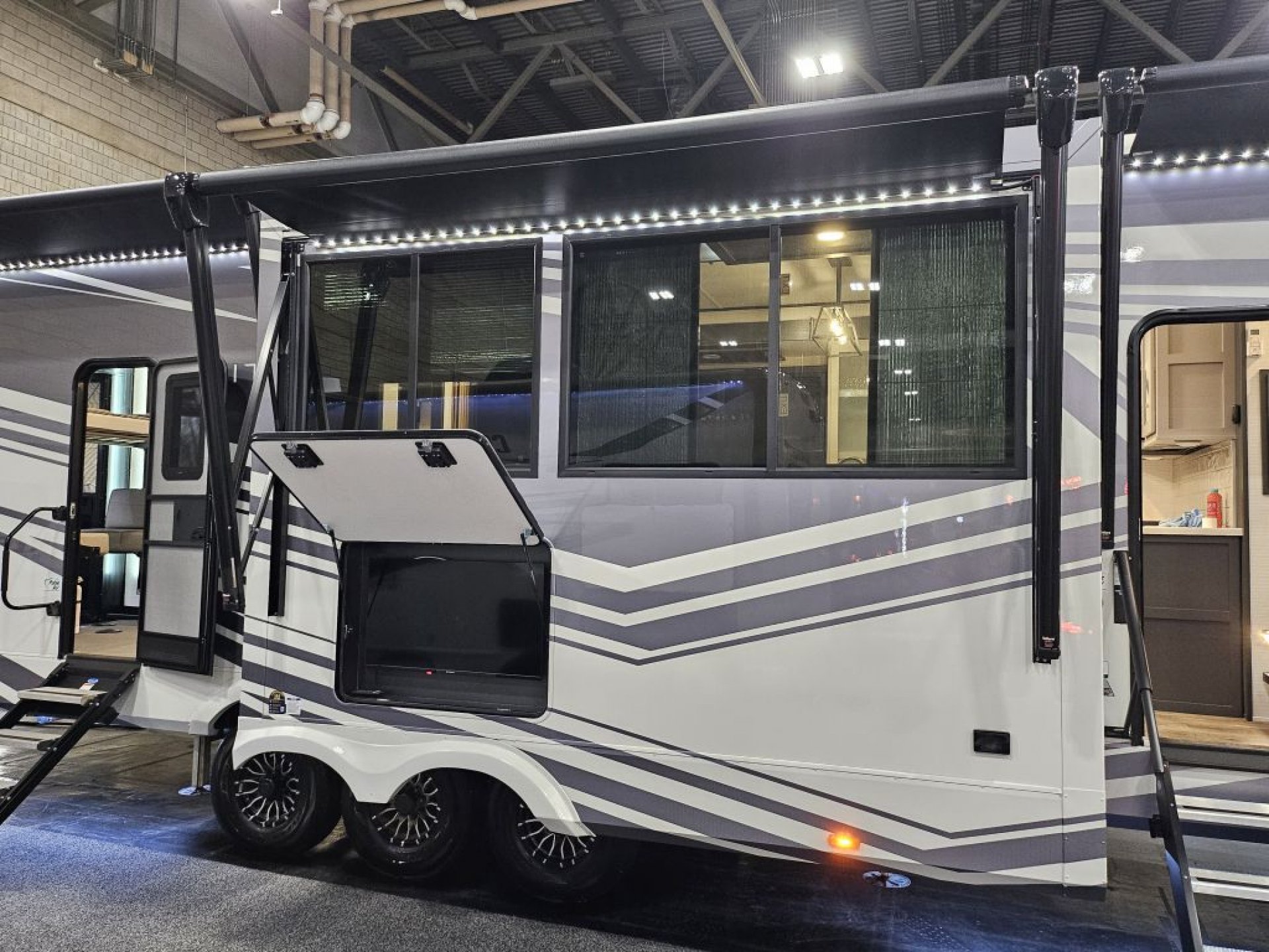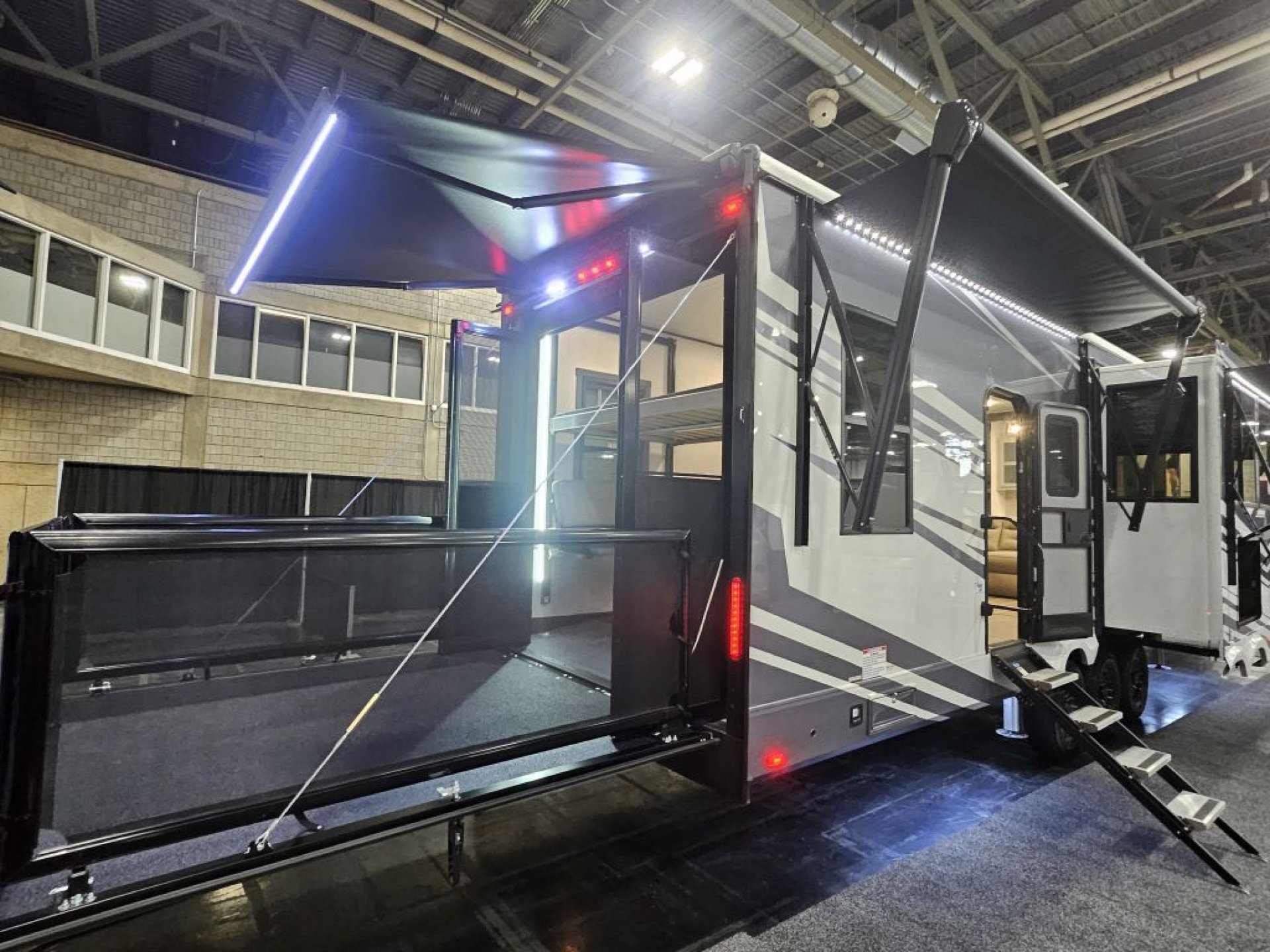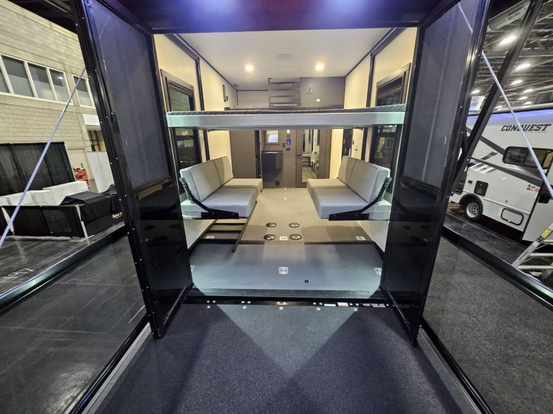 • 14-Foot Separate Garage: A massive cargo area with 5,000-lb tie-downs, a weatherproof insulated ramp door, and a 40-gallon fuel station to keep your toys running.