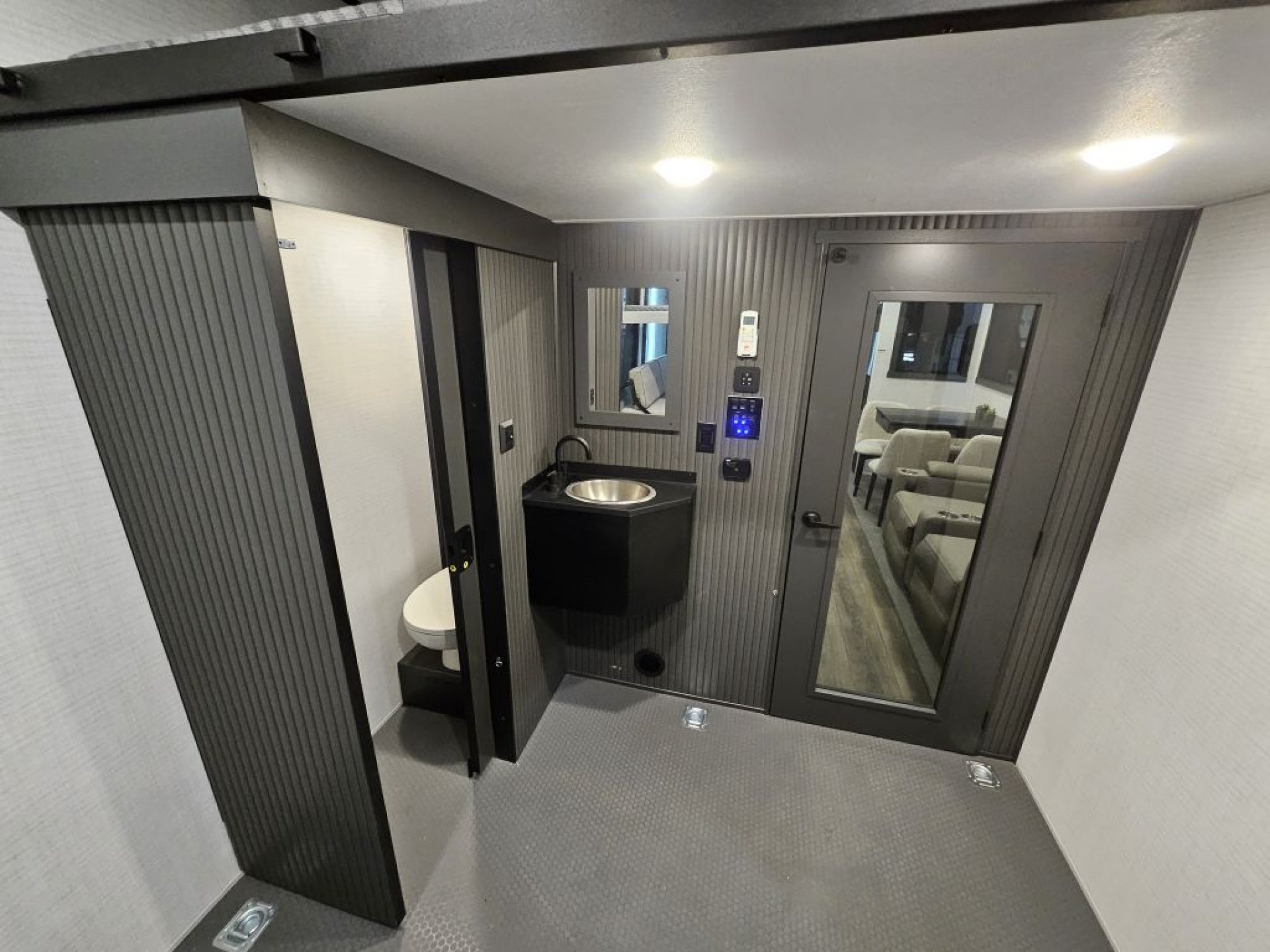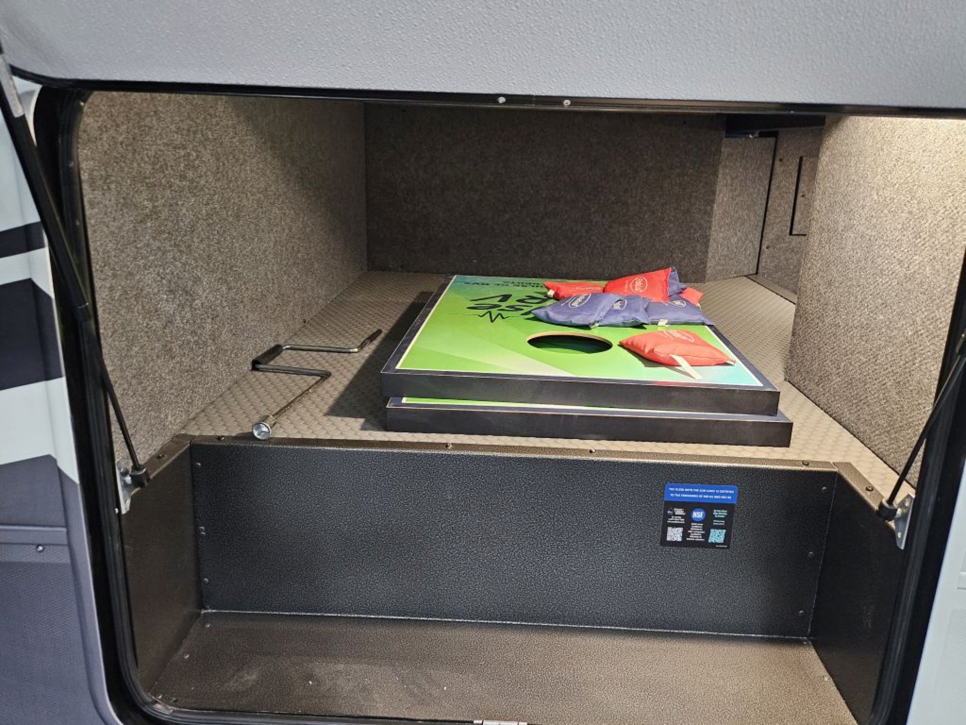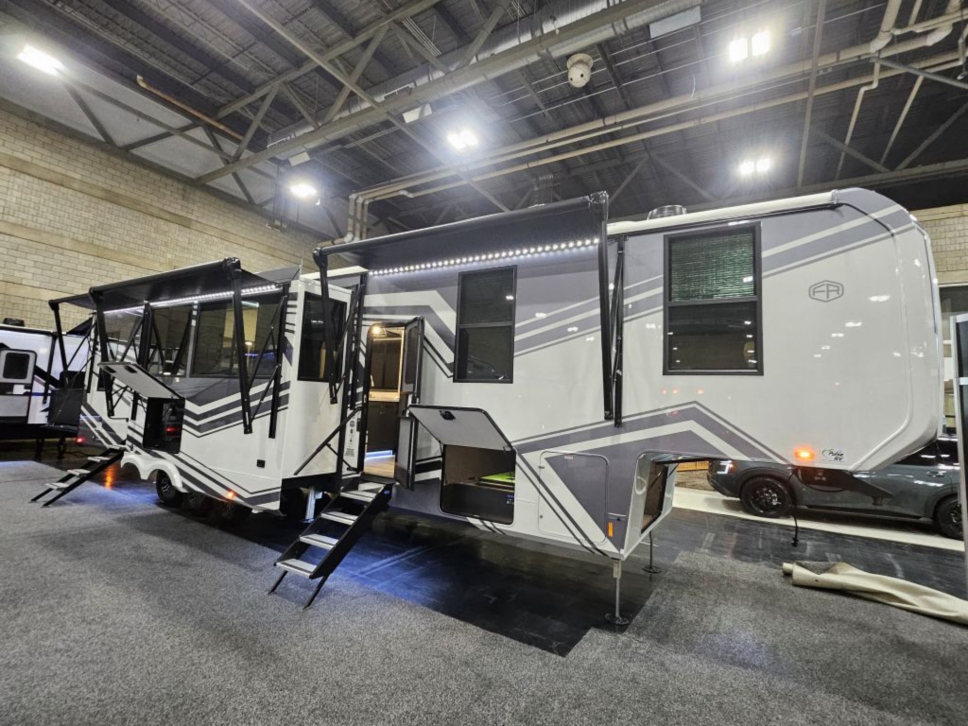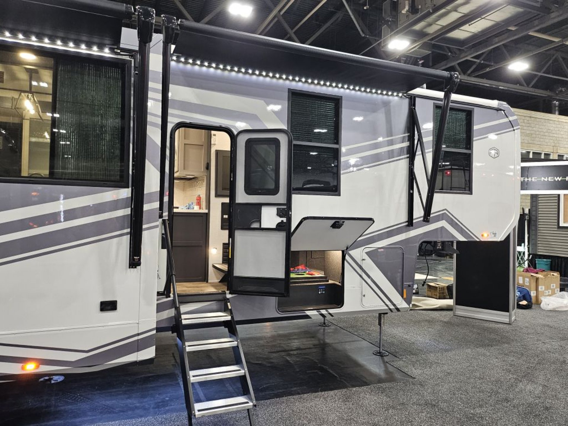 • 14-Foot Separate Garage: A massive cargo area with 5,000-lb tie-downs, a weatherproof insulated ramp door, and a 40-gallon fuel station to keep your toys running.