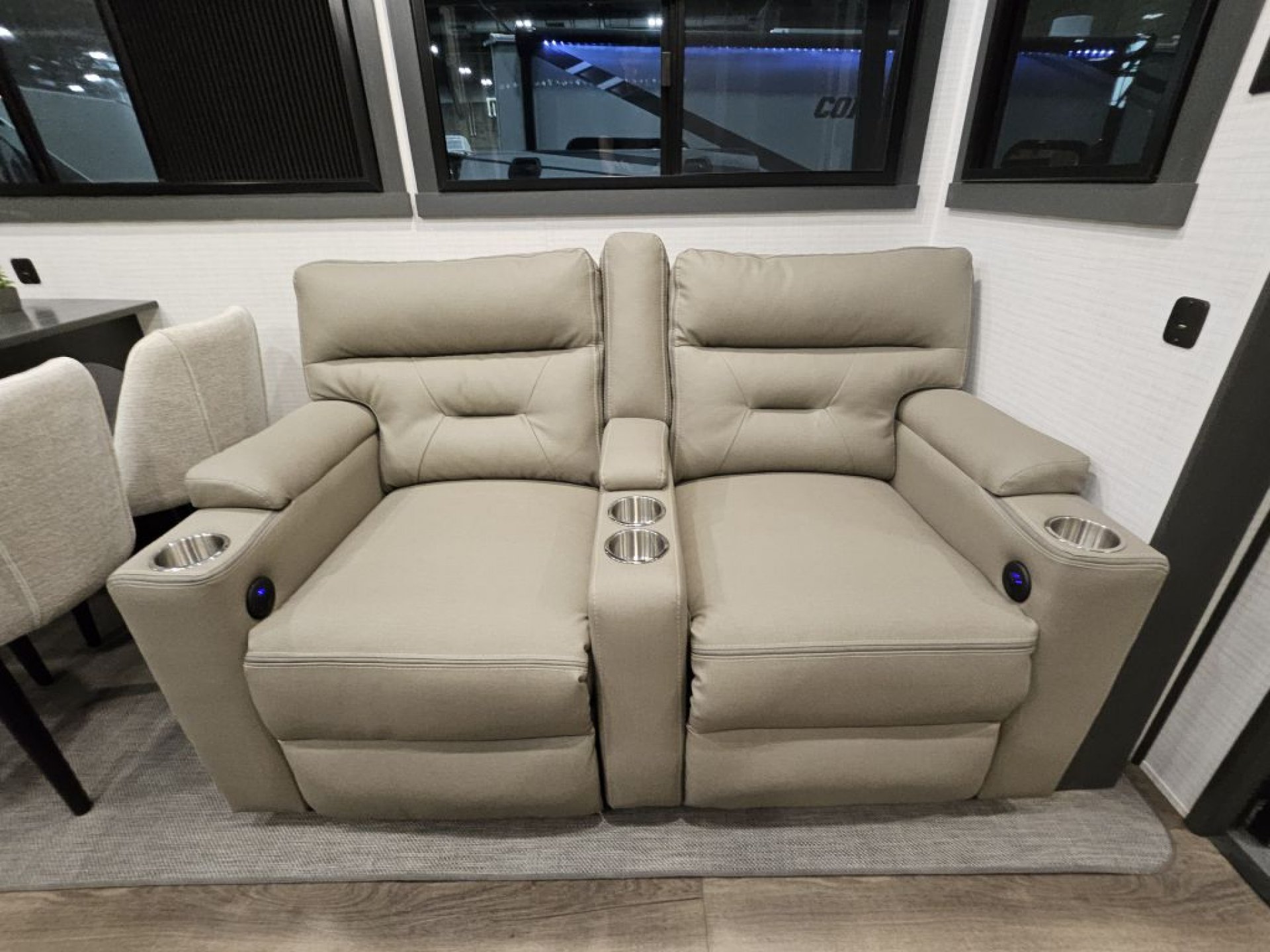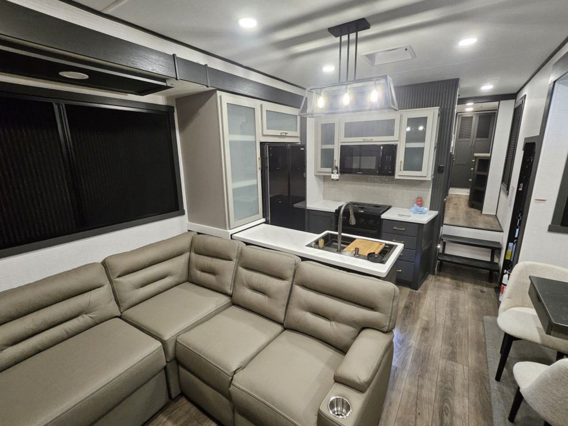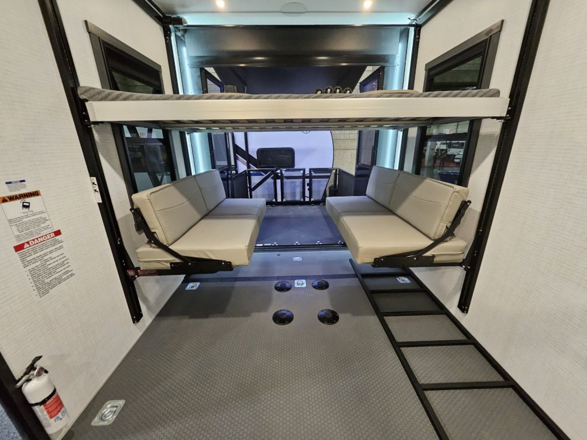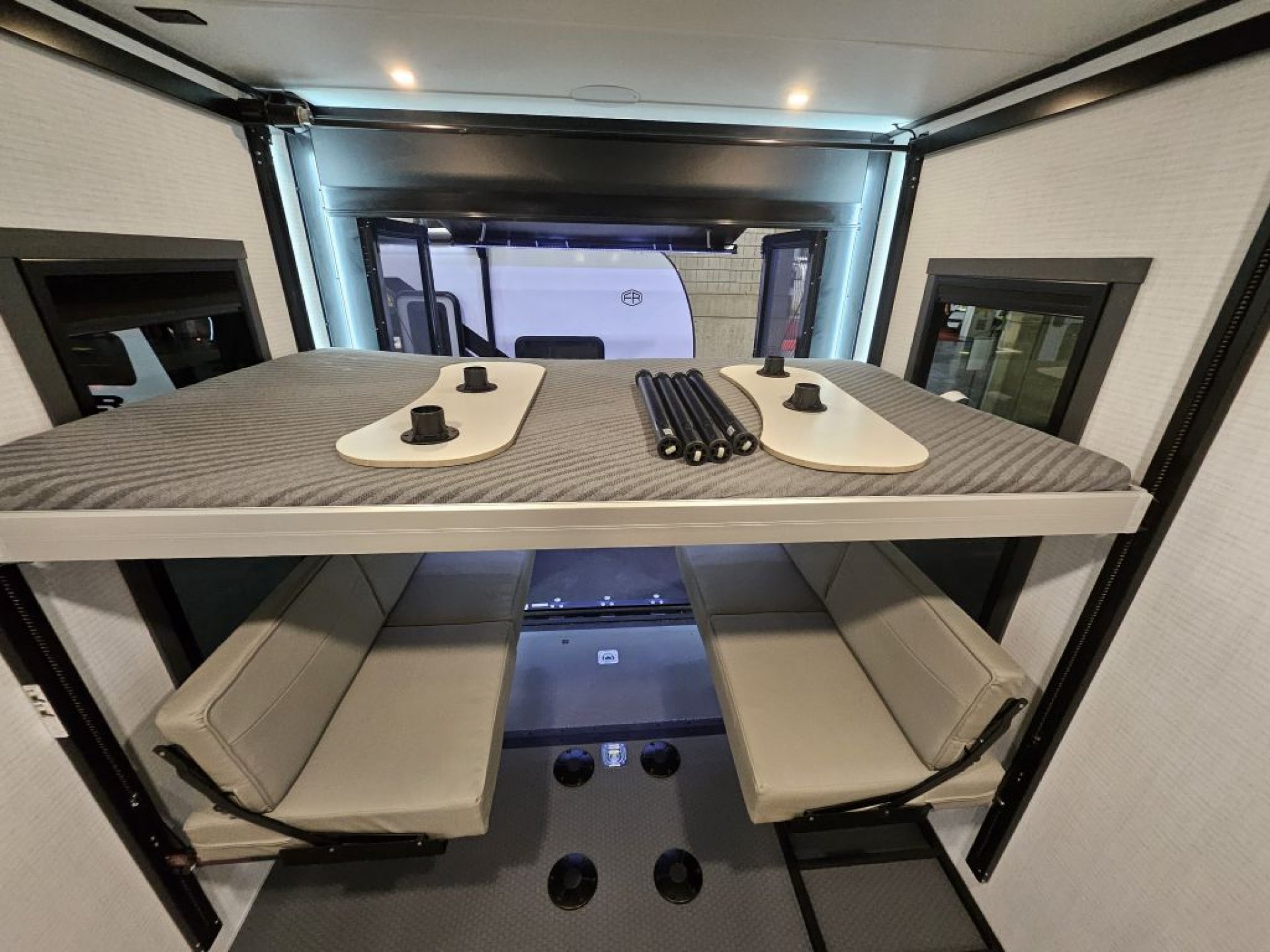 • Garage Suite: Includes a "Sit N Sleep" roll-over sofa system with an electric queen bed above, plus a dedicated half-bath and an overhead loft for extra guests.