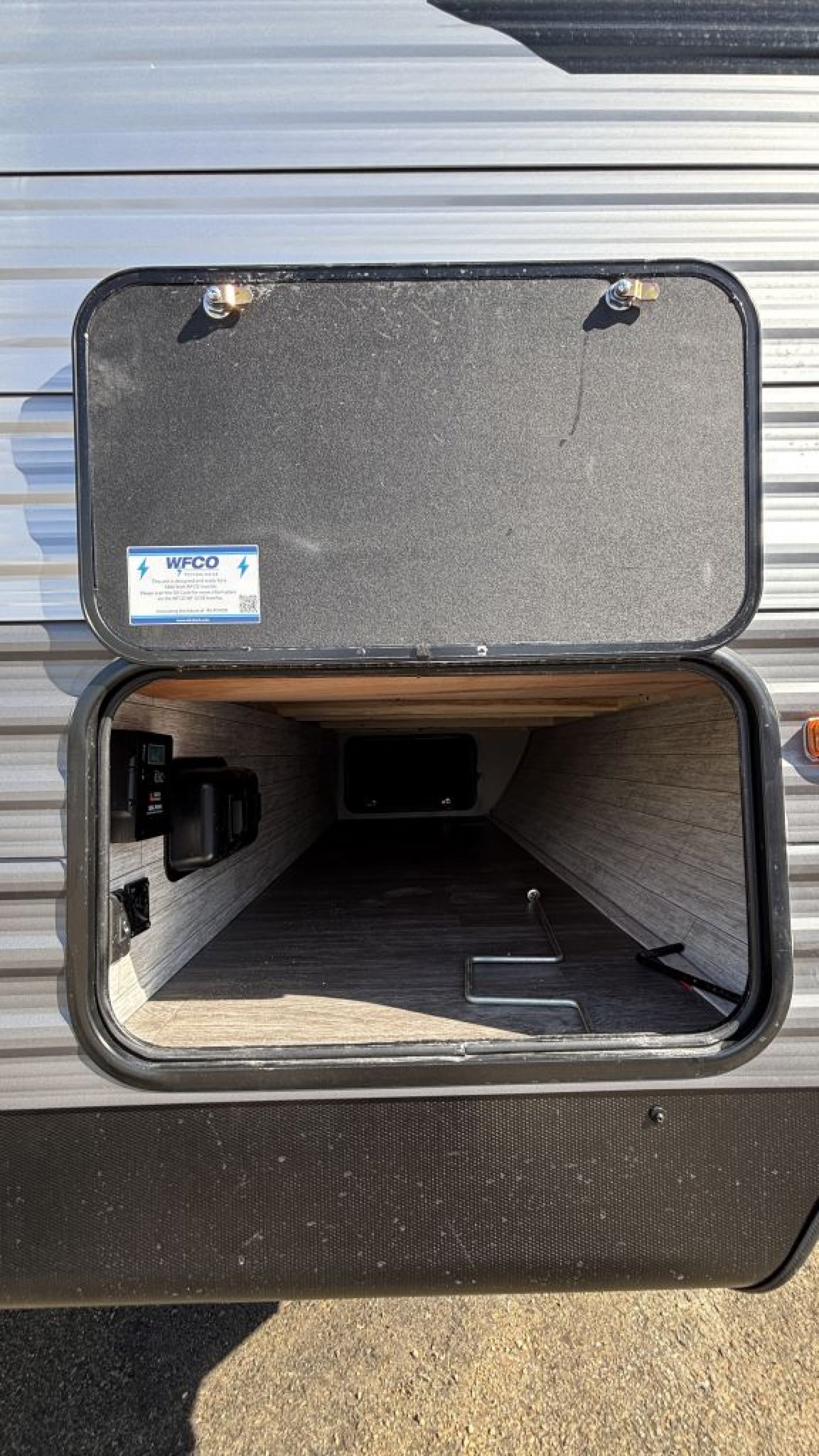 Key Specifications Specification Details Length (exterior, box) 25 ft 11 in Exterior Height (with A/C) Approximately 10 ft 3 in Unloaded Vehicle Weight (UVW) 4,643 lbs Gross Vehicle Weight Rating (GVWR) 5,500 lbs (estimated based on series standards) Cargo Carrying Capacity (CCC) Approximately 857 lbs Number of Slides 1 Sleeps Up to 7 Hitch Weight Approximately 500 lbs Fresh Water Capacity 38 gallons Gray Water Capacity 30 gallons Black Water Capacity 30 gallons LP Tanks Two 20 lb tanks Axles Tandem Tires Nitrogen-filled radial