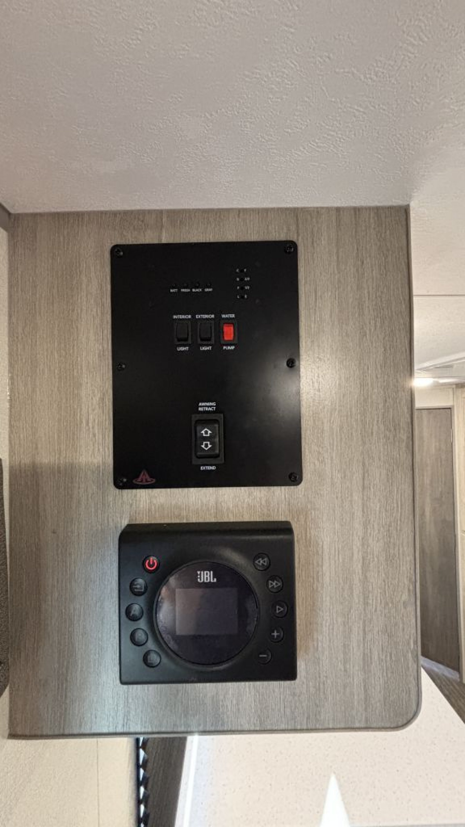 • Entertainment: Pre-wired for a 12V TV with Bluetooth stereo and exterior speakers.