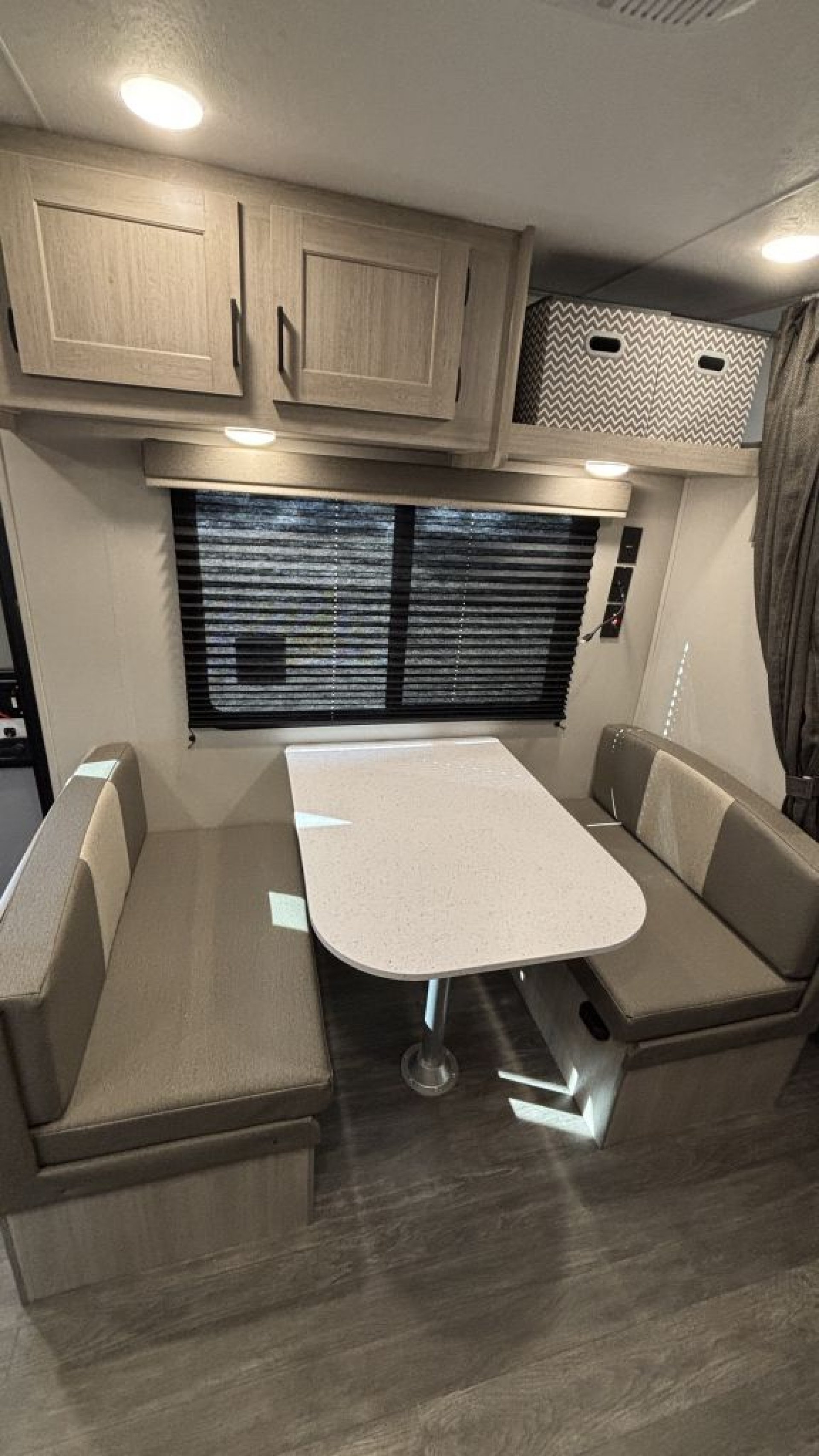 • Living Space: LED lighting throughout, blackout shades, and optional theater seating opposite the dinette for relaxation.