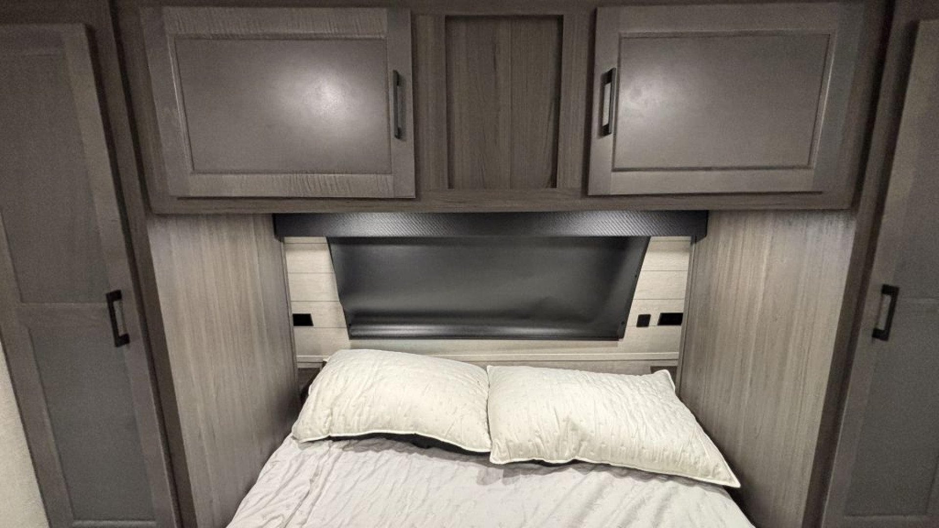 Master Suite: Up front, you'll find a Serta Memory Foam queen bed (with a king option) and a massive front closet that is prepped for a washer/dryer.