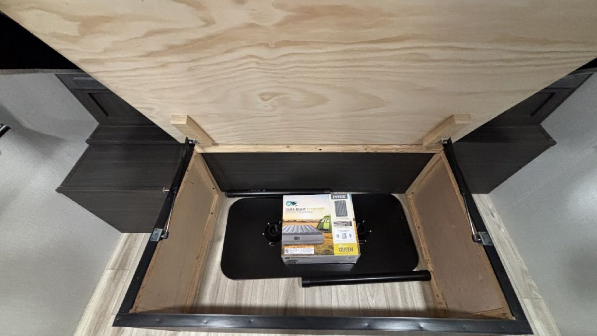 Walk-in Pantry: A rare luxury in travel trailers, offering floor-to-ceiling storage for snacks and gear.